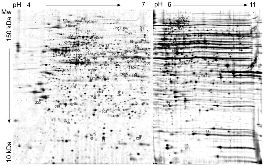 4.2. Two-Dimensional Gel Electrophoresis (2DE)