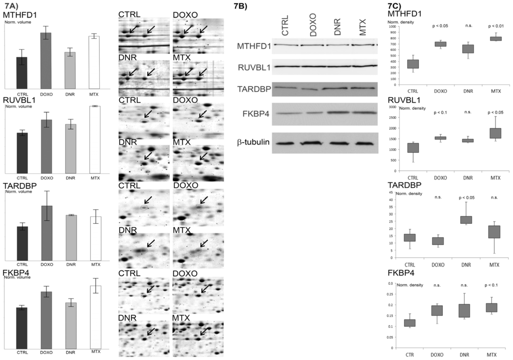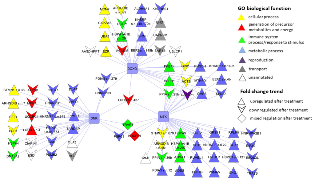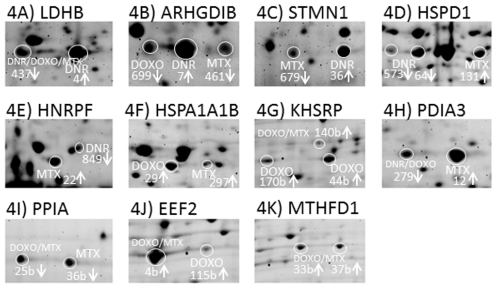 2.4. The Protein Changes Linking the Effects of Anthracycline/Anthracenedione Drugs DNR, DOXO, and MTX