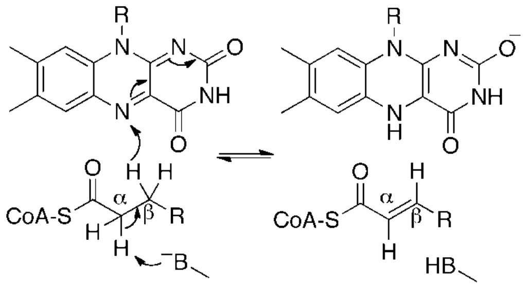 - Lenn, N.D.; Stankovich, M.T.; Liu, H.W. Regulation of the redox potential of general acyl-CoA dehydrogenase by substrate binding. Biochemistry 1990, 29, 3709–3715. [Google Scholar]