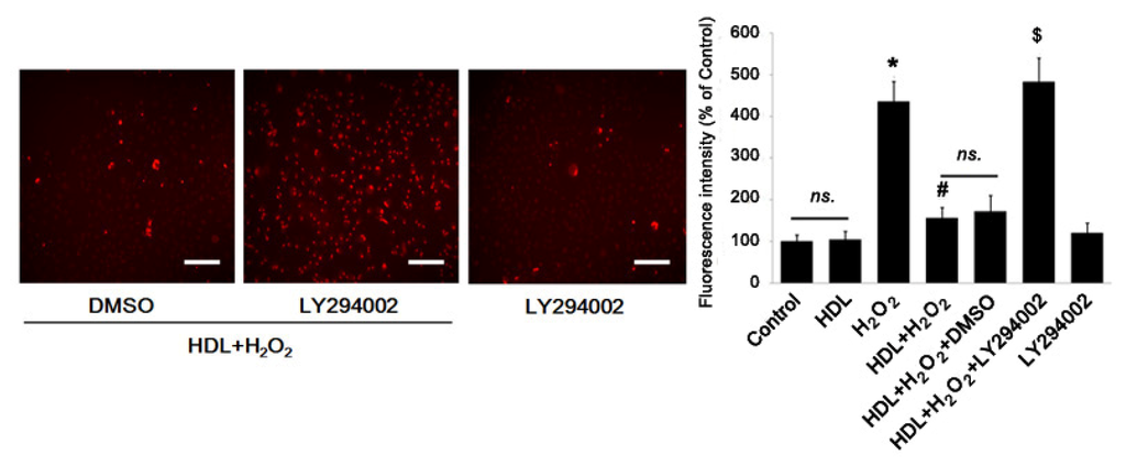 2.3. Phosphorylation of Akt Induced by HDL Inhibits ROS Generation