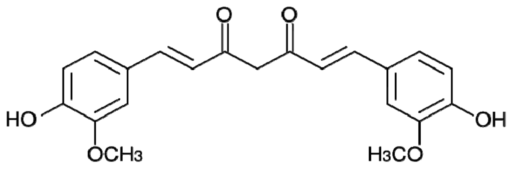 Curcumin is a polyphenolic compound representing 75%–80% of the active components present in turmeric, used as a curry spice in food and derived from the rhizome of the plant Curcuma longa, a member of ginger family. Curcumin is well known for its anti-inflammatory, antioxidant, chemopreventive and chemotherapeutic properties. Its symmetric and extended conjugated molecular structure resembles the structure of Congo red, which has been commonly used in diagnosis of amyloid-related diseases for its capability to bind amyloid fibrillar structures (Figure 3).