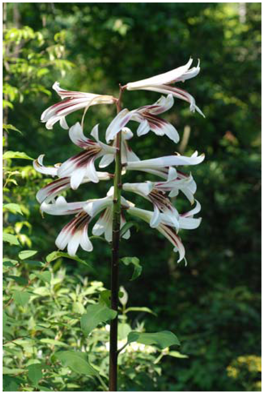 - Liang, S.; Tamura, M.N. Cardiocrinum. In Flora of China; Wu, Z.Y., Raven, P.H., Eds.; Science Press: Beijing, China; Missouri Botanical Garden Press: St. Louis, MO, USA, 2000; Volume 24, pp. 134–135. [Google Scholar]