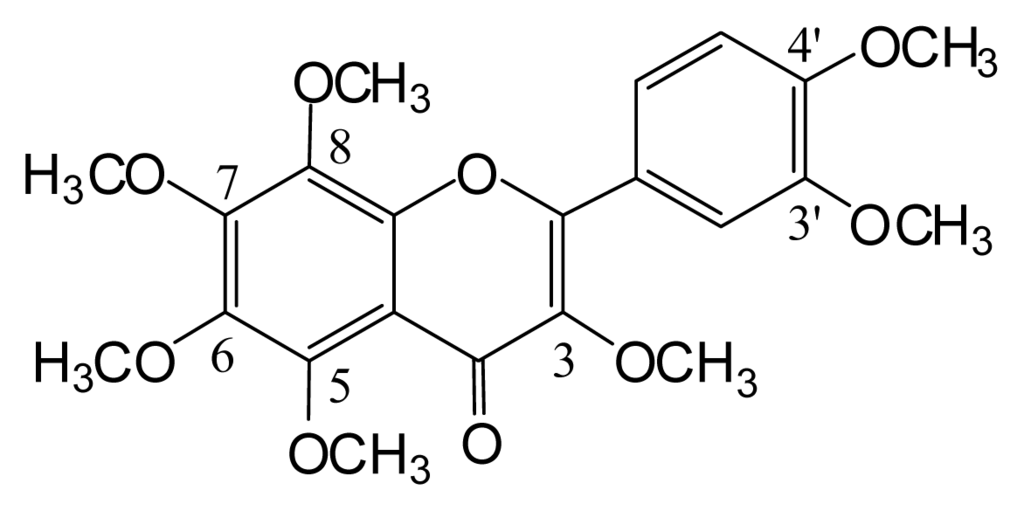 Chemical structure of 3,5,6,7,8,3′,4′-heptamethoxyflavone (HMF).