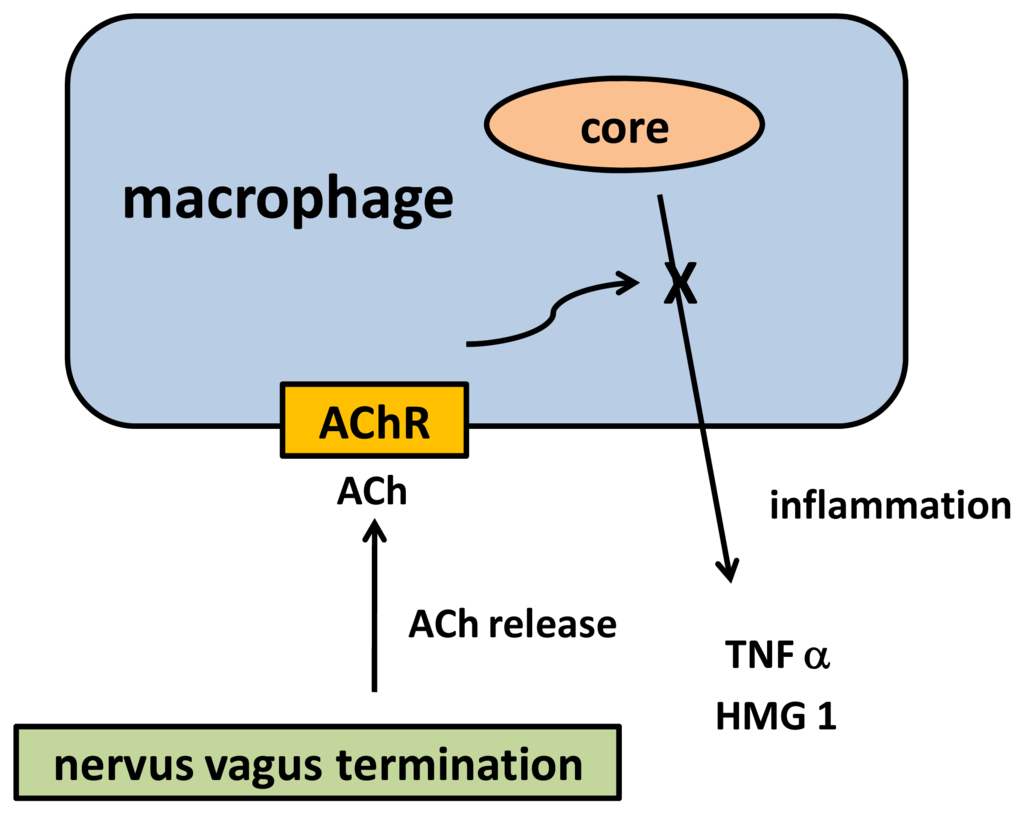 Inflammatory processes can be deteriorating without being properly controlled. Septic shock can be mentioned as an example. It is a life-threatening event with high expected mortality rate [61]. Another deteriorating action of immune system represented by macrophages is atherosclerosis [62]. Macrophages are also a target in HIV pathology as virus can proliferate within and the pathology is also involved in macrophage mediated bystander T lymphocytes apoptosis [63]. Stimulation of the cholinergic anti-inflammatory pathway is believed to be a neuro-immunomodulatory action with fast and reliable calming of the innate immune system [64]. The cholinergic anti-inflammatory pathway was proven to be effective in sepsis treatment [65], in ischemia (myocardial ischemia reperfusion injury) [66], and rheumatoid arthritis [67].