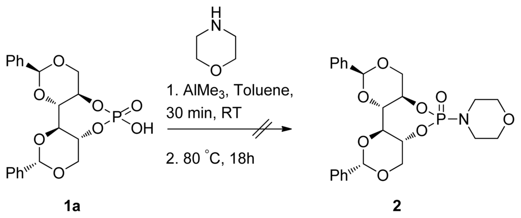We are interested in exploring derivatives with alternative acidic and basic sites to further expand the utility of this fascinating type of organocatalyst []. Interestingly, when chiral of Brønsted acid 1a was used to prepare N-morpholino phosphoramidate 2, the reaction failed (Scheme 3).