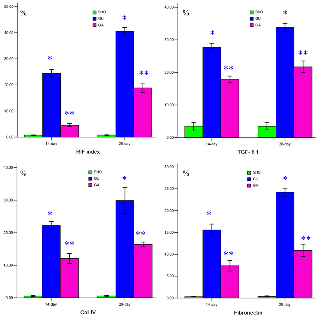 2.2. Association of ATRA Treatment with TGF-βl, Col-IV, Fibronectin, α-SMA, Prohibitin or Cleaved Caspase-3 Protein Expression