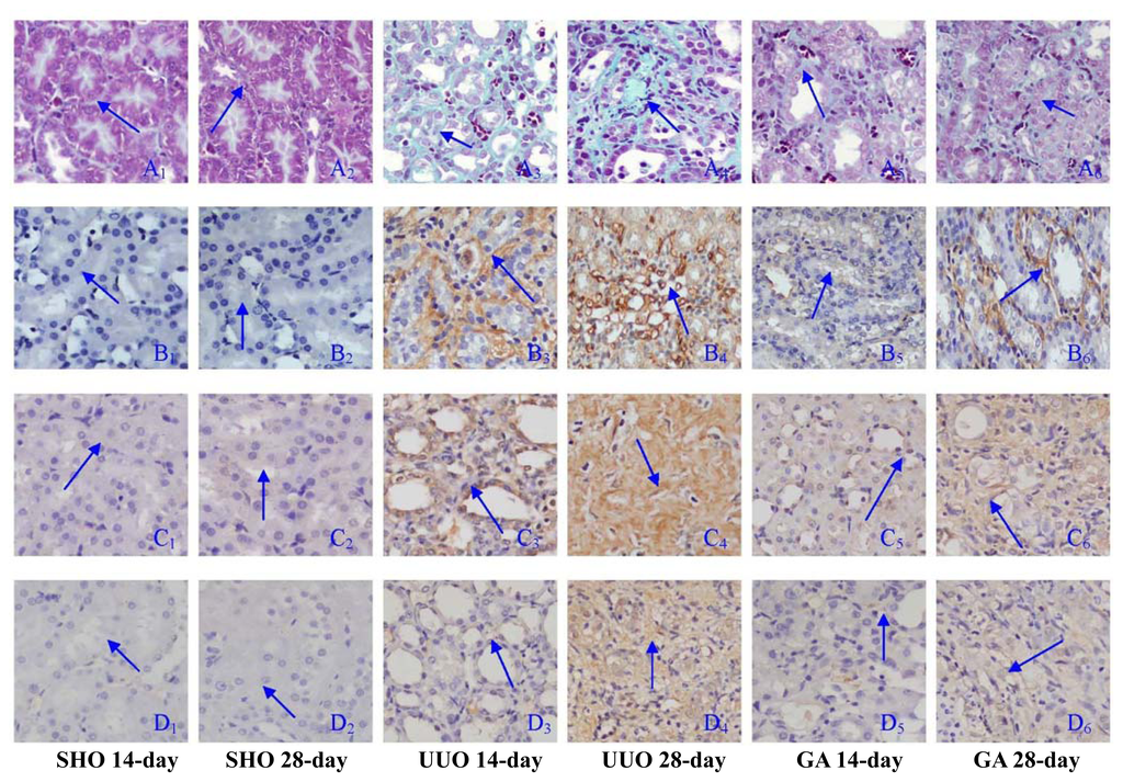 - Zhang, D.; Sun, L.; Xian, W.; Liu, F.; Ling, G.; Xiao, L.; Liu, Y.; Peng, Y.; Haruna, Y.; Kanwar, Y.S. Low-dose paclitaxel ameliorates renal fibrosis in rat UUO model by inhibition of TGF-β/Smad activity. Lab. Invest 2010, 90, 436–447. [Google Scholar]