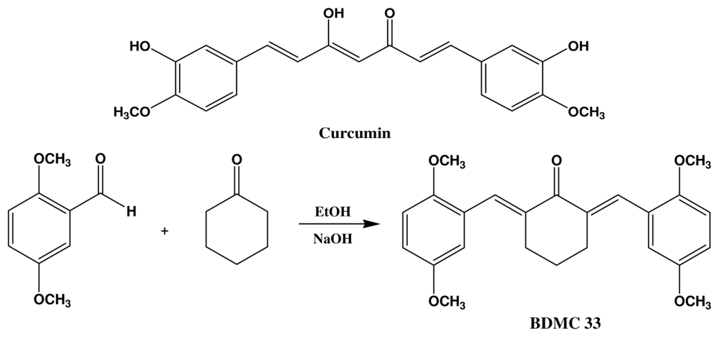 BDMC33 or 2,6-bis(2,5-dimethoxybenzylidene)cyclohexanone was chemically synthesized (Figure 1b) at the Institute of Bioscience, Universiti Putra Malaysia as describe previously [25].