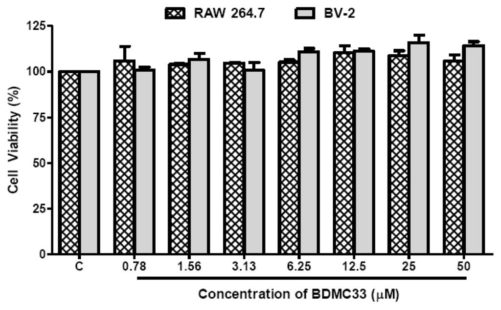 2.8. Effects of BDMC33 on NO and TNF-α Production from Microglial BV-2 Cells