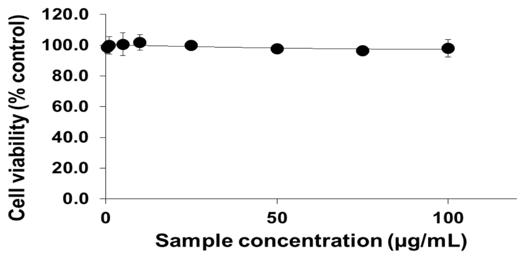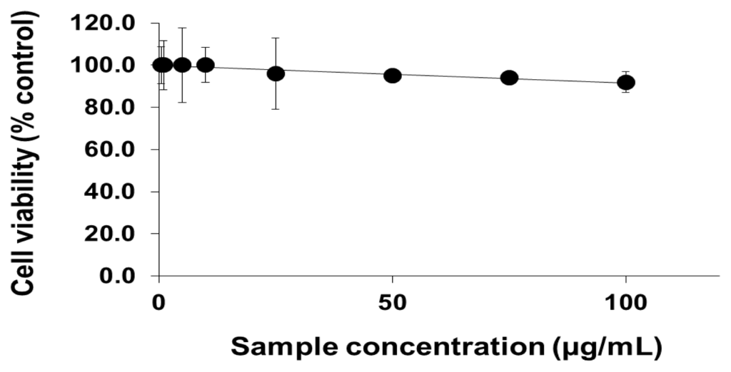 Cell viability was measured using a Cell Titer-Glo Luminescent Cell Viability Assay kit (Promega, WI, USA) according to the manufacturer’s instructions []. For the ATP assay, 1.0 × 104 NCI-H292 cells, 5.0 × 104 THP-1 cells, 2.0 × 104 HeLa cells, and 1.0 × 104 HepG2 cells were seeded in each well of a white opaque-walled 96-well cell culture plate (Nunclone, Roskilde, Denmark). After the cells attained 80% confluence, they were treated with different concentrations of a suspension of PEG-TiO2, ranging from 0.00005% (w/v) (0.5 μg/mL) to 0.01% (w/v) (100 μg/mL) for 24 h. Each PEG-TiO2 particle suspension was added to the cell culture medium at a volume ratio of 5:100 and cultured for 24 h. The cytoplasmic ATP concentration was then analyzed using a Luminescent cell viability assay reader (Wako Jyunyaku).