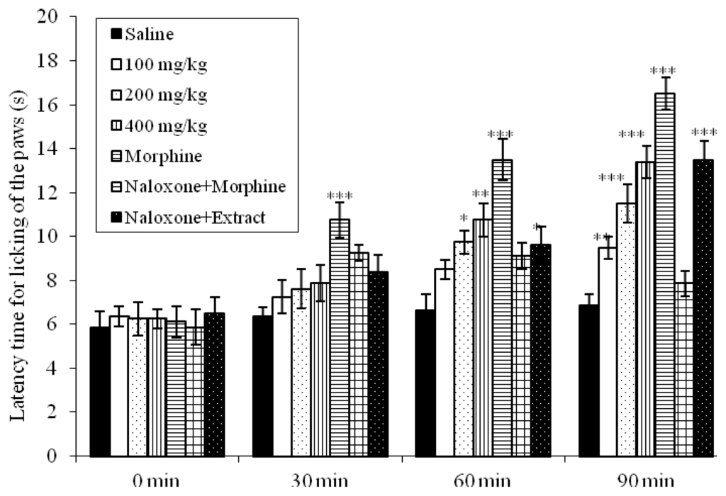 2.4. Effects on Hot-Plate Latency Assay in Mice