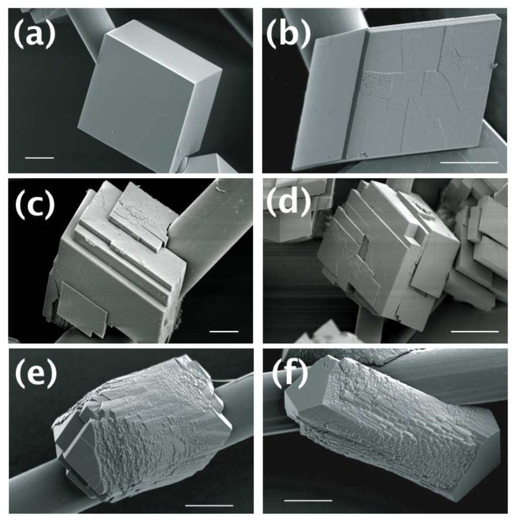 - Han, Y.-J.; Wysocki, L.M.; Thanawala, M.S.; Siegrist, T.; Aizenberg, J. Template-dependent morphogenesis of oriented calcite crystals in the presence of magnesium ions. Angew. Chem. Int. Ed 2005, 44, 2386–2390. [Google Scholar]