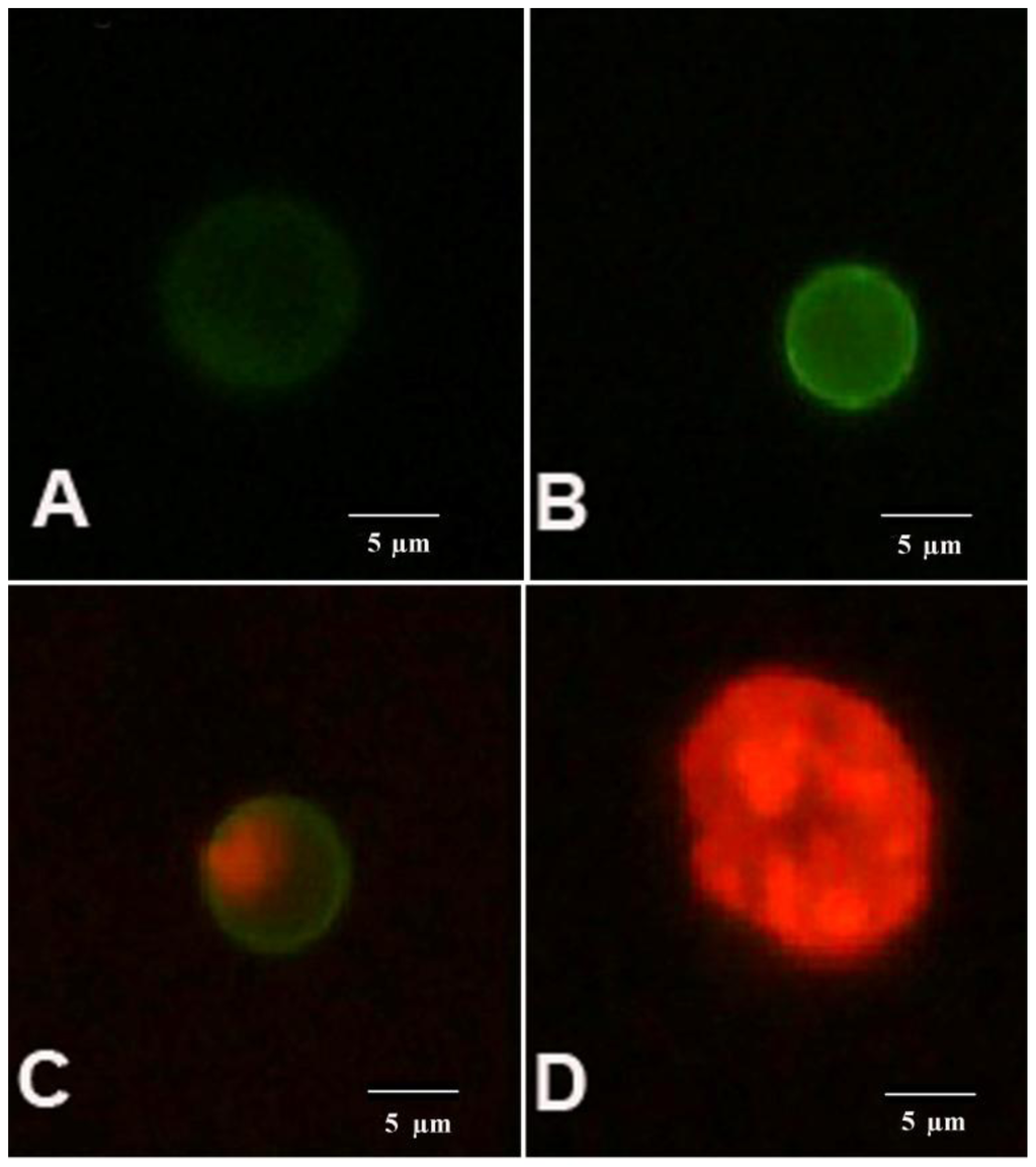 - Guthrie, H.D.; Welch, G.R. Determination of intracellular reactive oxygen species and high mitochondrial membrane potential in Percoll-treated viable boar sperm using fluorescence-activated flow cytometry. J. Anim. Sci 2006, 84, 2089–2100. [Google Scholar]