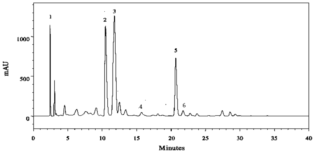 3.9. Conditions Used for Phenolic Analysis