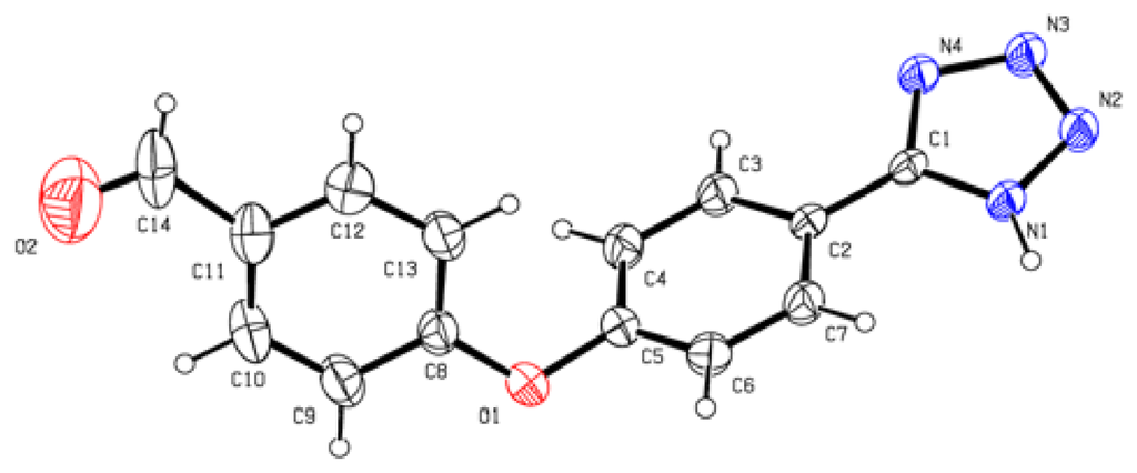 - Lu, J.; Xu, J.; Ni, L.-W.; Ma, W.-L.; Du, Z.-T. 4-[4-(1H-Tetrazol-5-yl)phenoxy]benzaldehyde. Acta Crystallogr. E 2011, 67. [Google Scholar] [CrossRef]