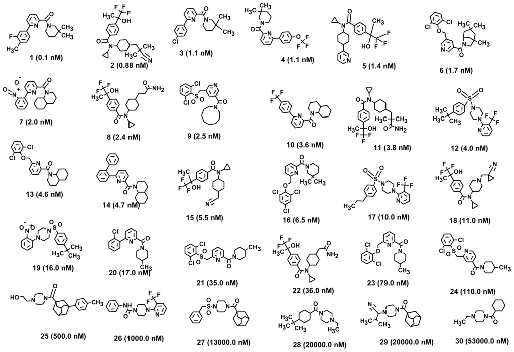 - Flyren, K.; Bergquist, L.O.; Castro, V.M.; Fotsch, C.; Johansson, L.; Jean, D.J.; Sutin, L.; Meredith, W. Piperidine amides as 11β-hydroxysteroid dehysrogenase type 1 inhibitors. Bioorg. Med. Chem. Lett 2007, 17, 3421–3425. [Google Scholar]