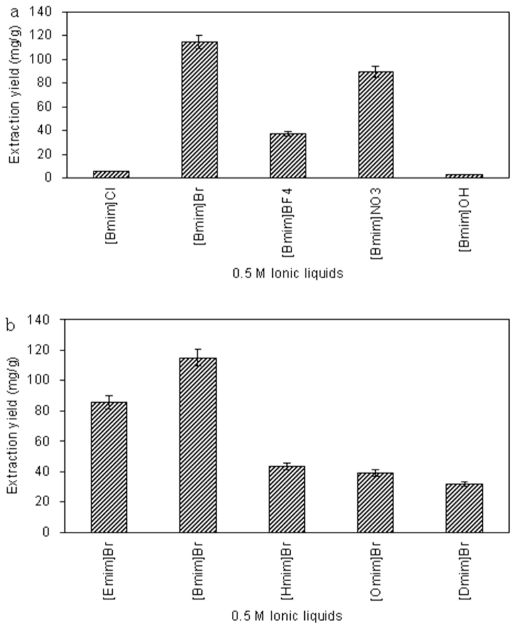 2.1. Screening of the Ionic Liquid-Based Extracting Solvent