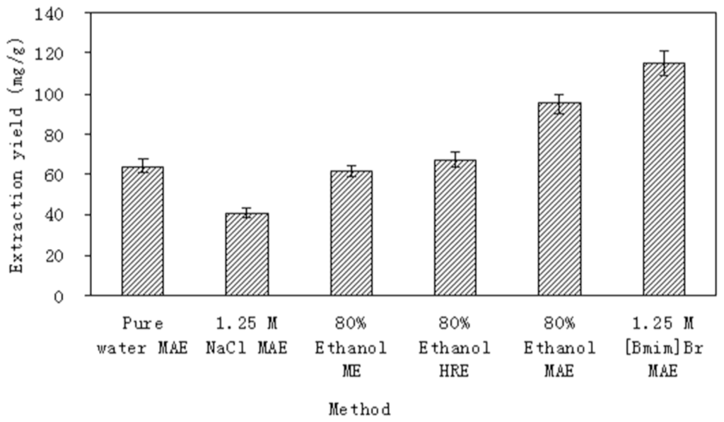 - Du, F.Y.; Xiao, X.H.; Luo, X.J.; Li, G.K. Application of ionic liquids in the microwave-assisted extraction of polyphenolic compounds from medicinal plants. Talanta 2009, 78, 1177–1184. [Google Scholar]