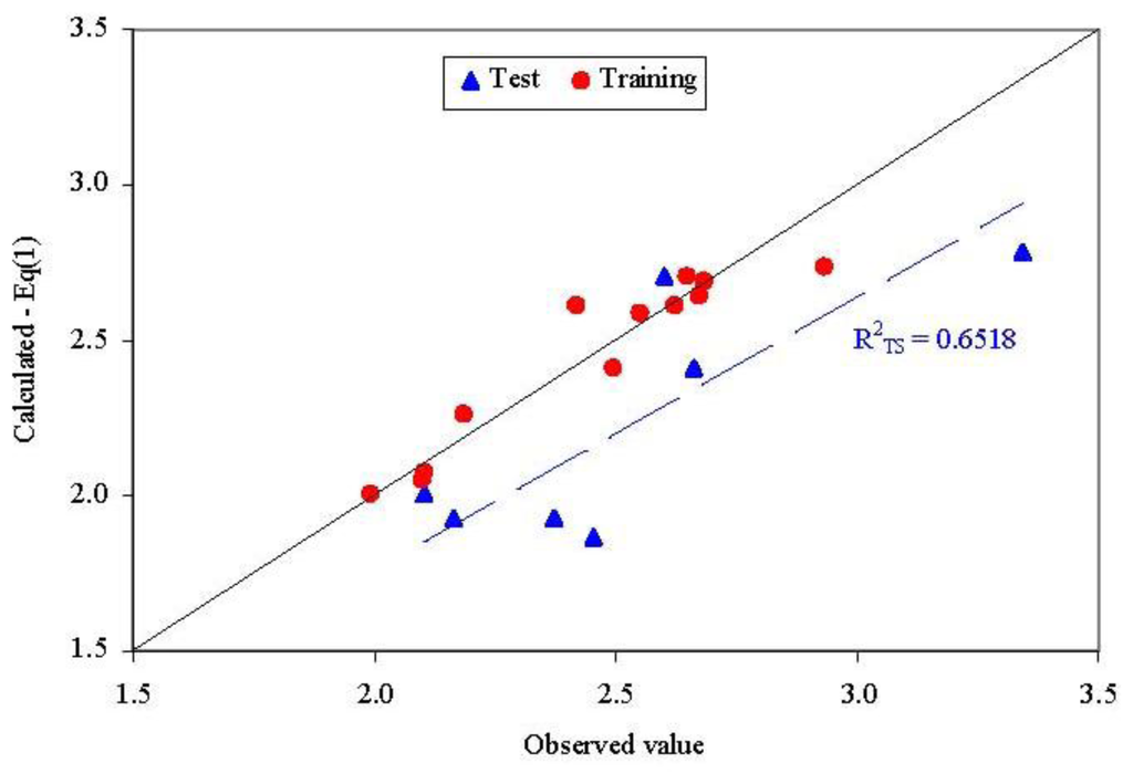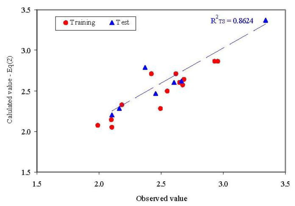 The abilities in estimation (training set) and prediction (test set) of the model from Equation(1) are presented in Figure 3. No statistically significant difference could be identified when the goodness-of-fit was compared in training set and test set for the model presented in Equation (1) (Z = 0.3590, p = 0.3598).