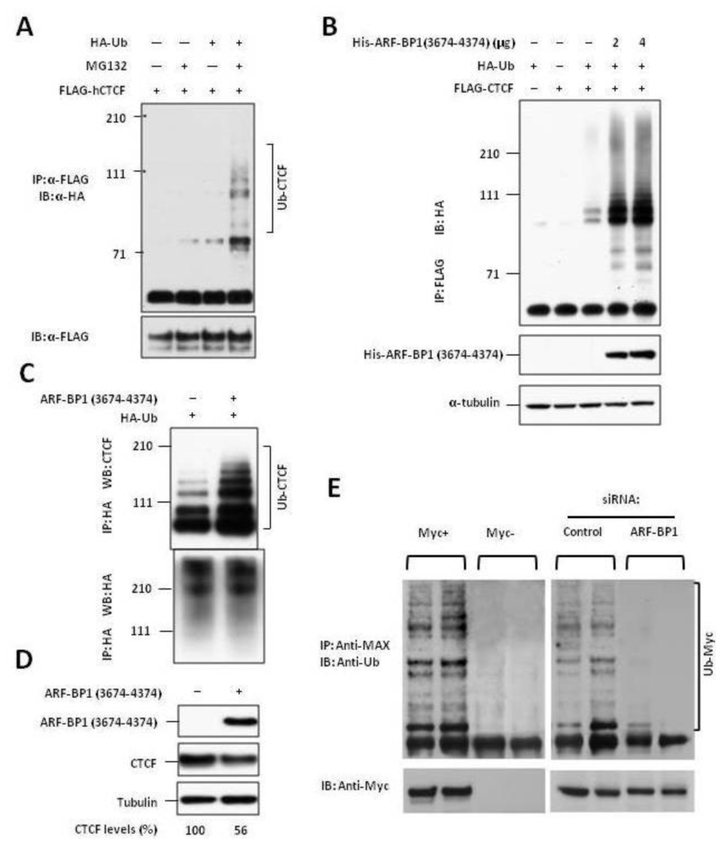 2.2. ARF-BP1 Binds to and Ubiquitylates CTCF