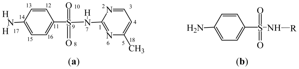 (a) Pharmacophore of sulfamerazine and (b) backbone of sulfonamides.
