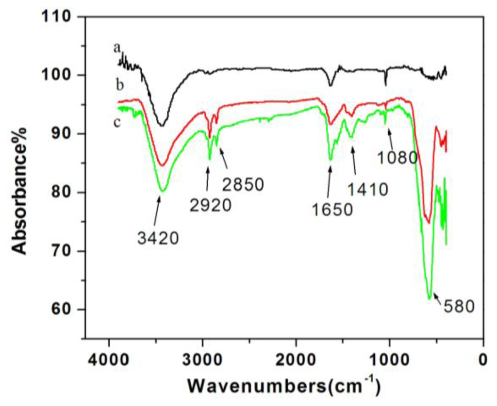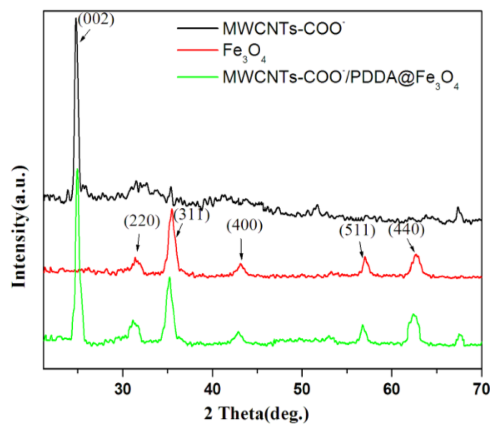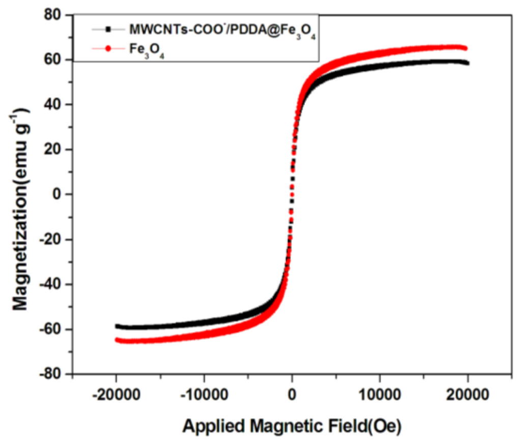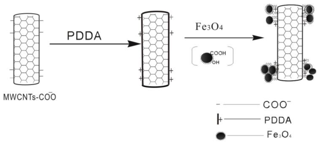 3.3. Synthesis of MWCNTs-COO−/PDDA@Fe3O4