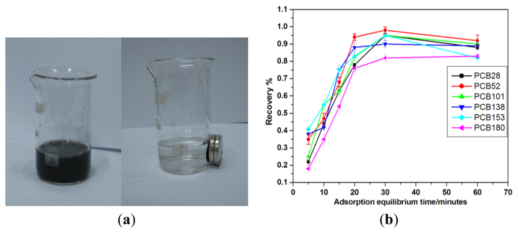 2.2.1. Magnetic Separation and Adsorption Equilibrium Time