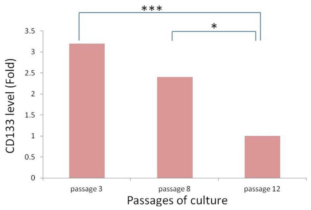 The methods have been described previously [15]. Total RNA was prepared from cells using the Absolutely RNA Nanoprep Kit (Stratagene,). The forward and reverse primers of CD133 were 5′-TCT CTA TGT GGT ACA GCC G-3′, 5′-TGA TCC GGG TTC TTA CCT-3′. Complementary DNA synthesis and quantitative analysis were performed with AffiniScriptTM Muti Temperature cDNA Synthesis Kit and Brilliant II Fast SYBR Green QPCR Master Mix (Stratagene) following the manufacturer’s instructions. Amplification was performed using the ABI 7500 Real Time System.