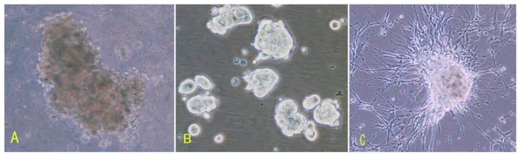 Third, there may be stem-like cells in meningiomas. The culture medium and environment in our study were appropriate for the growth and proliferation of stem cells. The culture medium in our study was conditional NSCs medium containing progesterone and androstenedione, and the culture system was a hypoxia system. The NSCs medium in our study is suitable for stem cells culture. Our results suggested that there would be stem-like cells in meningiomas, which is consistent with recent the identification of tumor stem-like cells as tumor-initiating cells in meningiomas [10]. In addition, a lot of studies have proved that hypoxia could enhance the generation of embryonic stem cells and induce pluripotent stem cells [11]. Therefore, we used NSCs medium as the basic medium for culturing meningioma cells in a hypoxic environment. In addition, so far, it is not clear what kind of growth factors can promote the proliferation of meningioma cells. However, defined medium conditioned by meningioma cells per se might contain some factors, perhaps identical to a normal endogenous growth factor in vivo, capable of stimulating the proliferation of meningioma cells [14]. And the progesterone and androgen receptor-positive rate in meningioma tissues were relatively high [12,13], so progesterone and androstenedione in the culture medium might contribute to the growth and proliferation of meningioma cells.