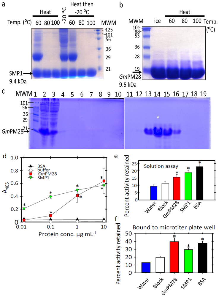 3.3. Characterization of SMP1 and GmPM28 as Boiling-Stable Proteins