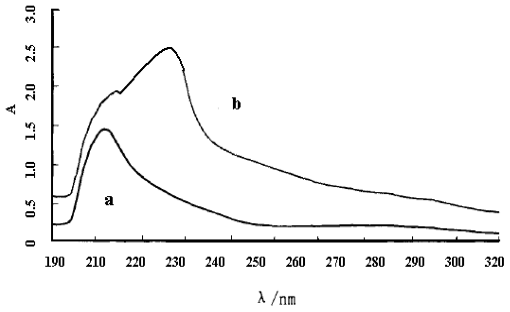 UV spectrum of native starch (a) and starch palmitate (b) color complex with iodine.