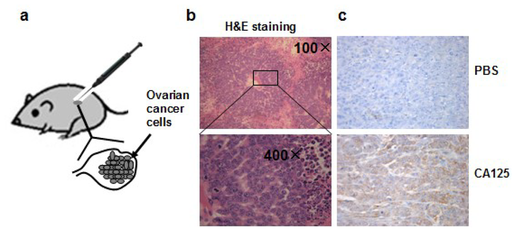 2.1. Establishment of the Orthotopic Ovarian Tumor Model in Nude Mice