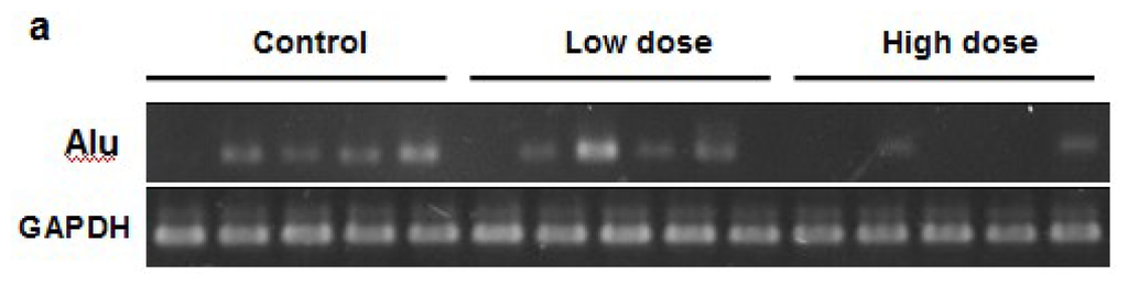 - Furmaga, W.B.; Ryan, J.L.; Coleman, W.B.; Cole, S.R.; Tsongalis, G.J. Alu profiling of primary and metastatic nonsmall cell lung cancer. Exp. Mol. Pathol 2003, 74, 224–229. [Google Scholar]