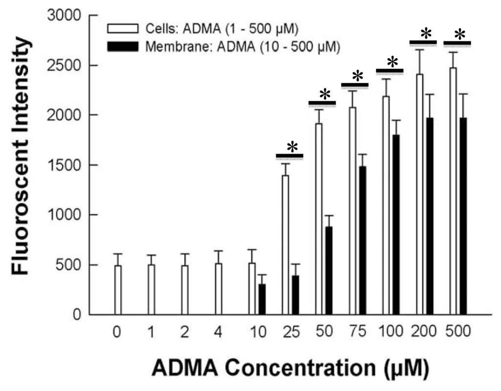 2.1. ADMA Induces Enchanced DHE Fluorescence in HUVEC Cells and Cell Membranes