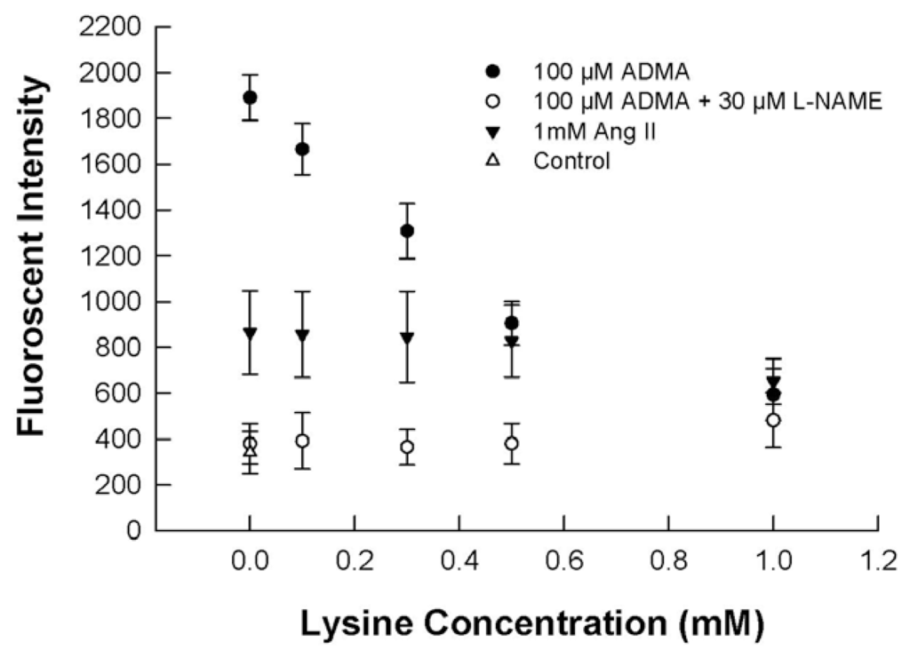 2.5. Effects of Apocynin or Losartan on ADMA-Induced O2•− Production