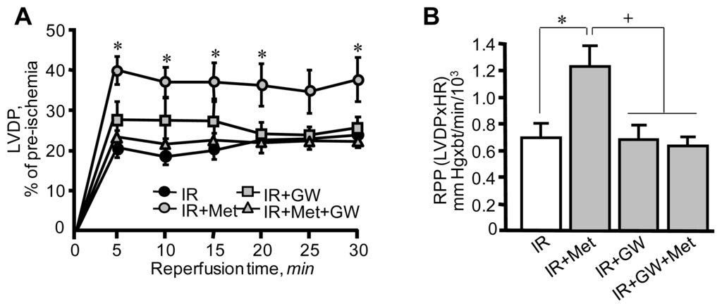 3.1. Metformin-Induced Improvement of Post-Ischemic Cardiac Function Is Attenuated by GW6471