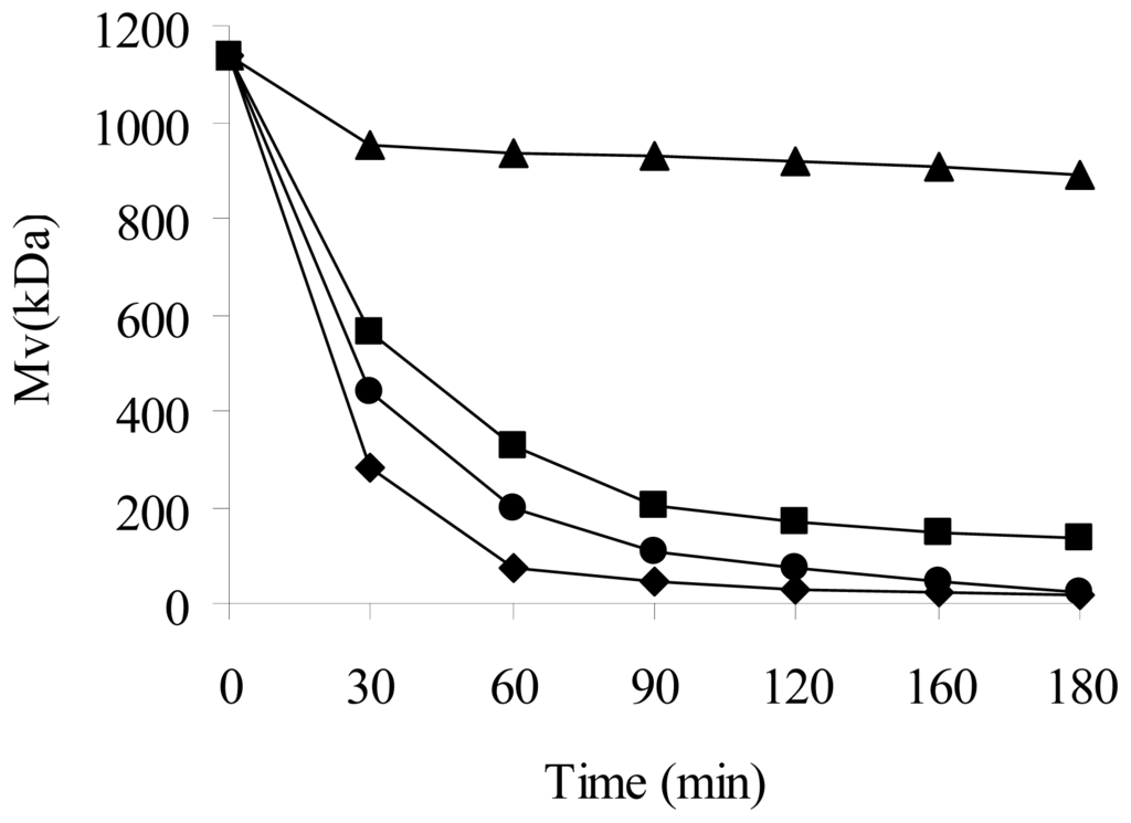 - Yue, W.; Yao, P.; Wei, Y.; Mo, H. Synergetic effect of ozone and ultrasonic radiation on degradation of chitosan. Polym. Degrad. Stabil 2008, 93, 1814–1821. [Google Scholar]