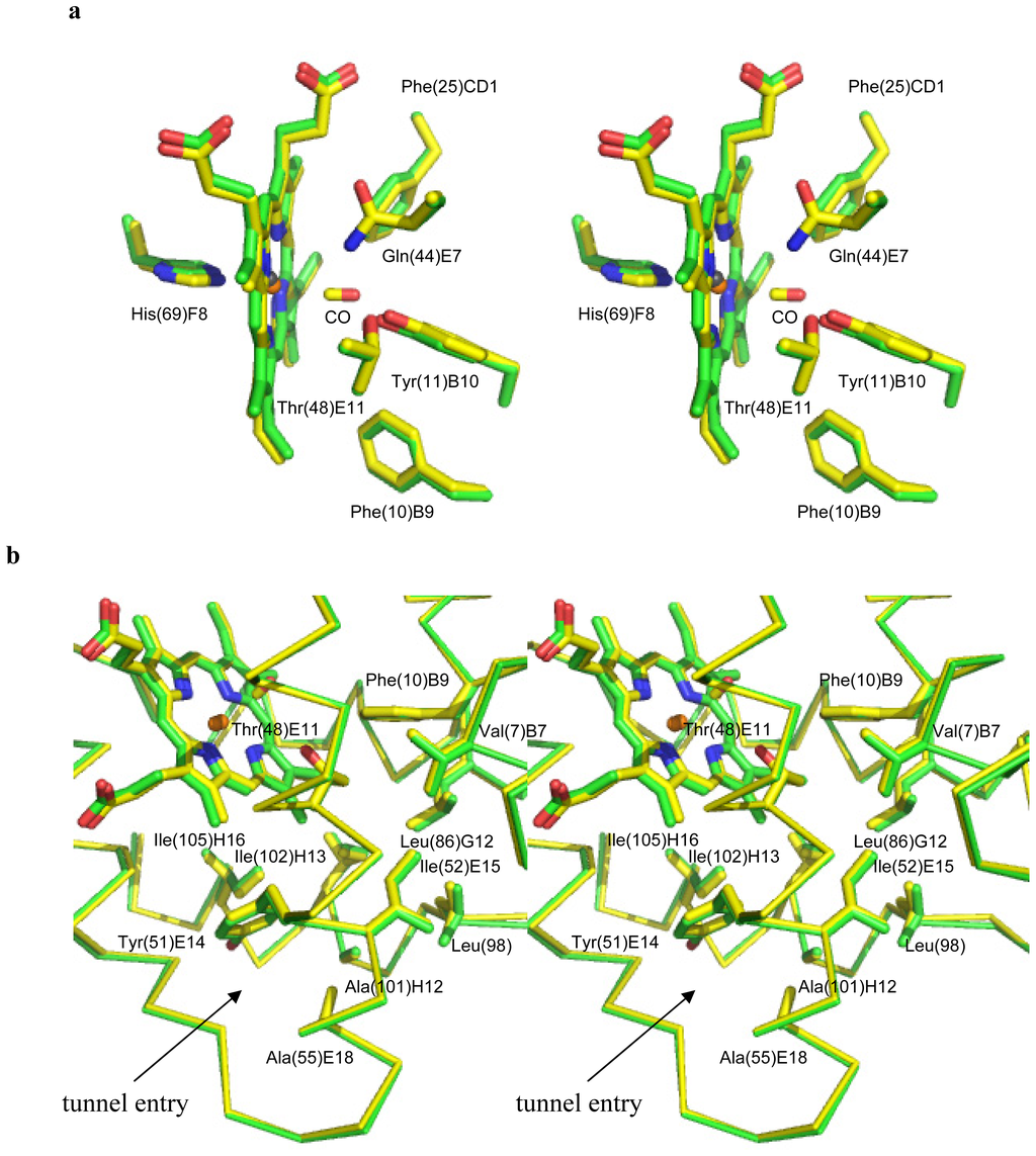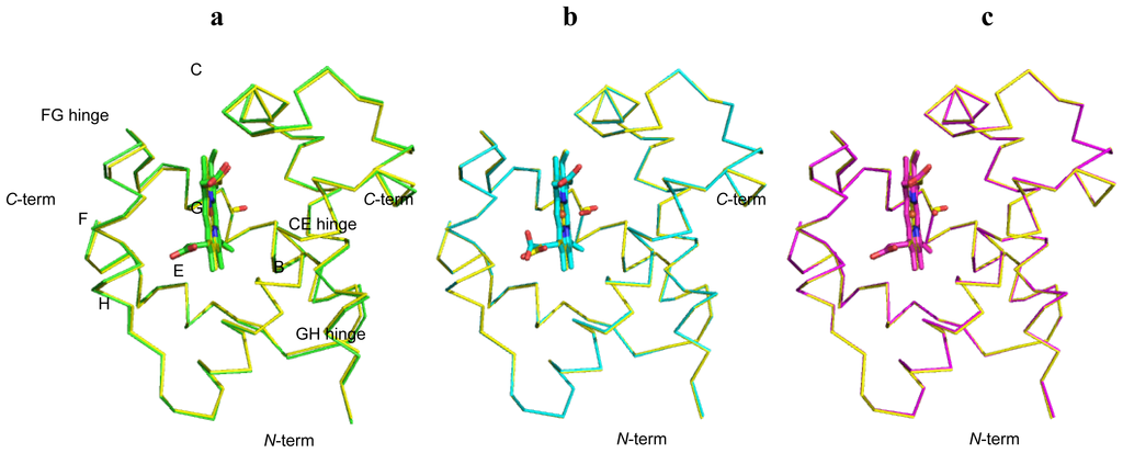 2.1. Overall Structures of CerHb in the Unligated and Carbomonoxy States