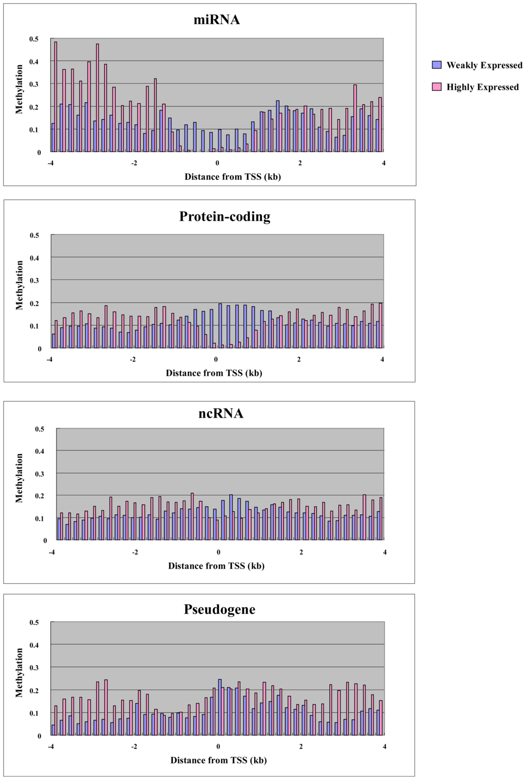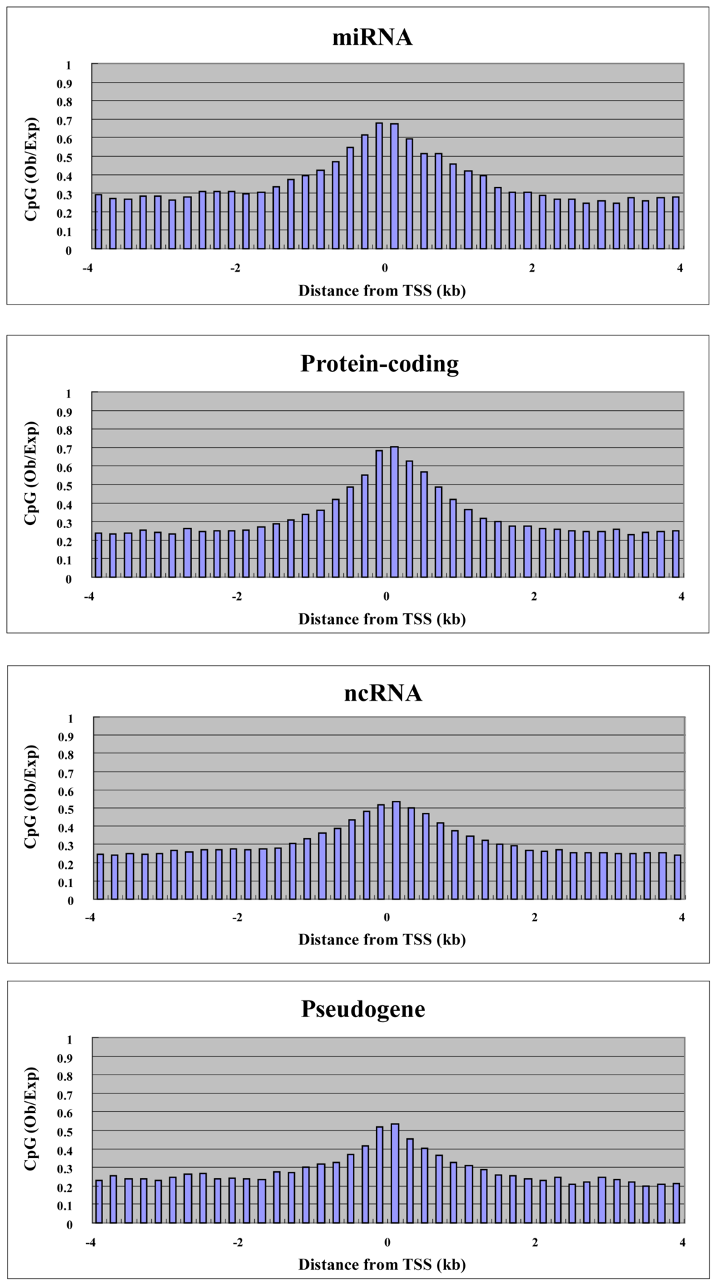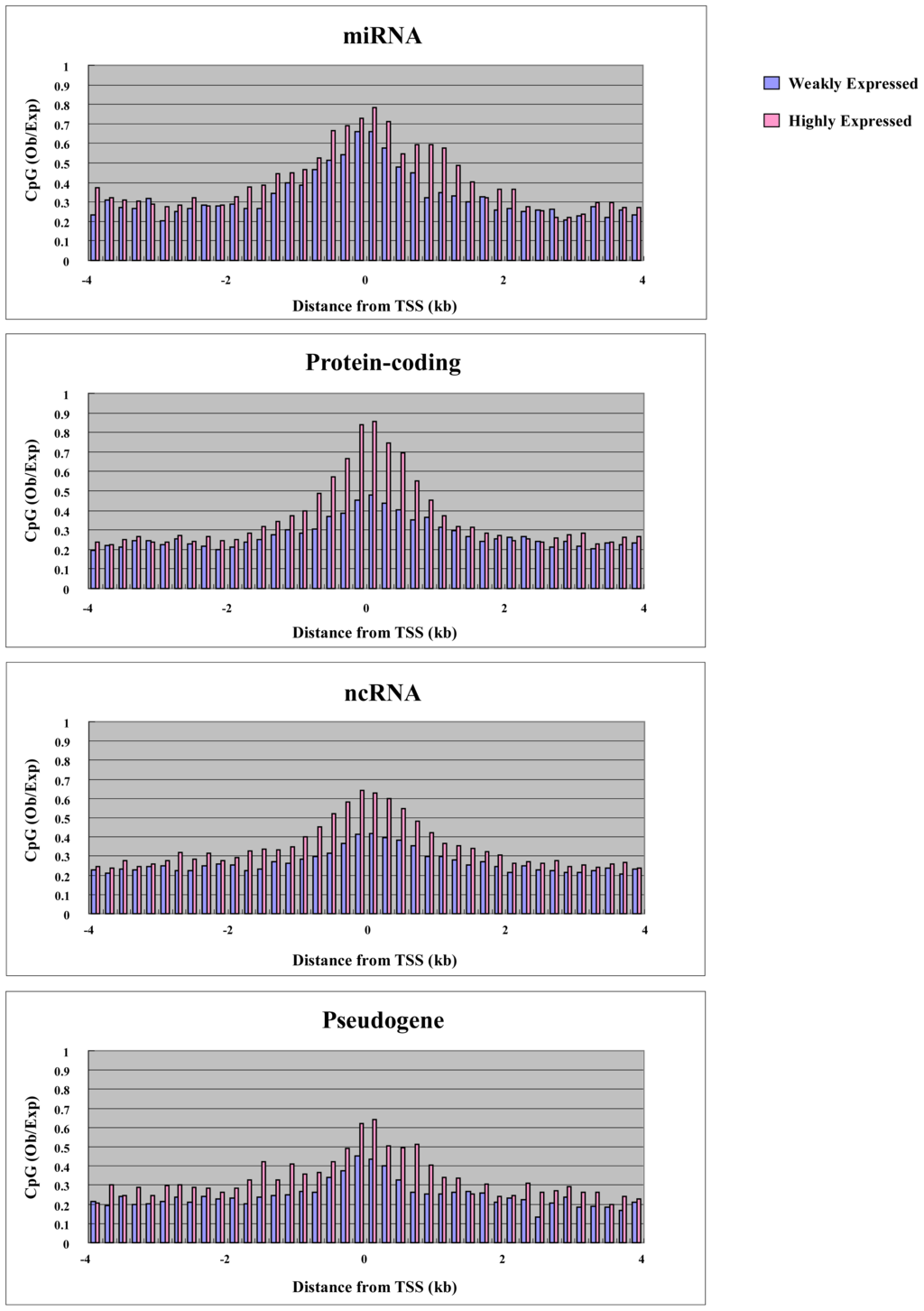 2.3. CpG Density versus Transcription