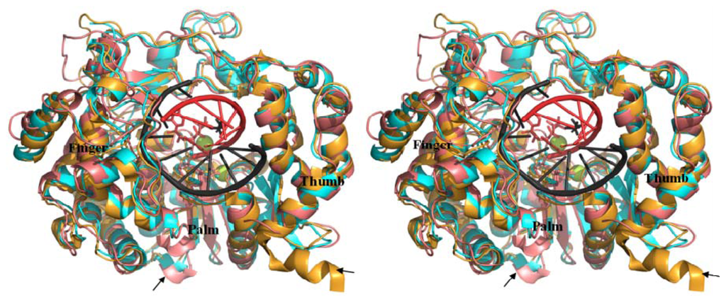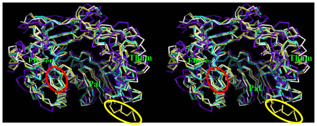 - Thompson, A.A.; Albertini, R.A.; Peersen, O.B. Stabilization of poliovirus polymerase by NTP binding and fingers-thumb interactions. J. Mol. Biol 2007, 366, 1459–1474. [Google Scholar]