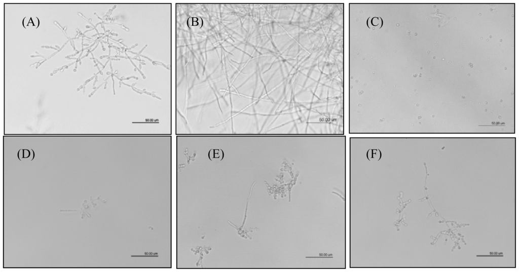 3.6. Inhibition of Hyphal Growth