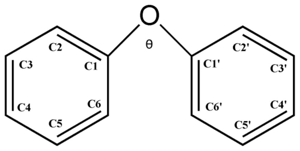 A schematic geometry of diphenyl ether and definitions of the atomic positions.