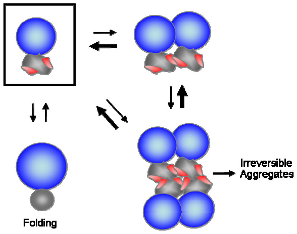 - Schmittschmitt, J.P.; Scholtz, J.M. The role of protein stability, solubility, and net charge in amyloid fibril formation. Protein Sci 2003, 12, 2374–2378. [Google Scholar]