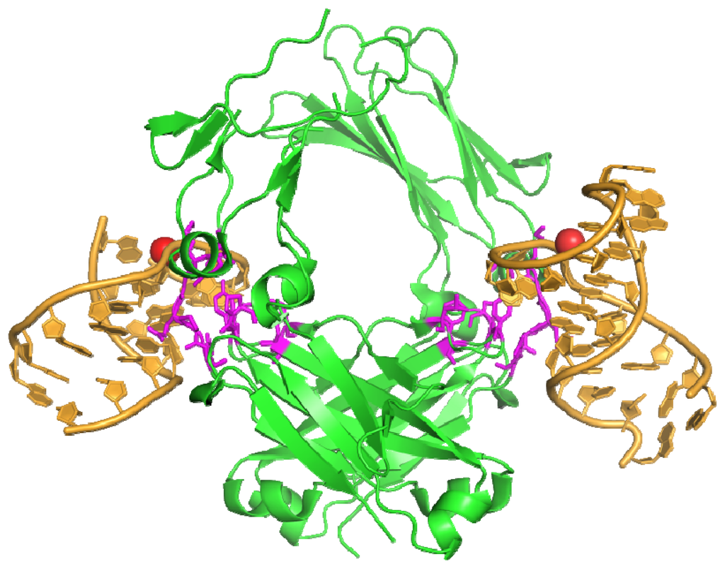- Huang, D.B.; Vu, D.; Cassiday, L.A.; Zimmerman, J.M.; Maher Iii, L.J.; Ghosh, G. Crystal structure of NF-κb (p50)2 complexed to a high-affinity RNA aptamer. Proc. Natl. Acad. Sci. USA 2003, 100, 9268–9273. [Google Scholar]