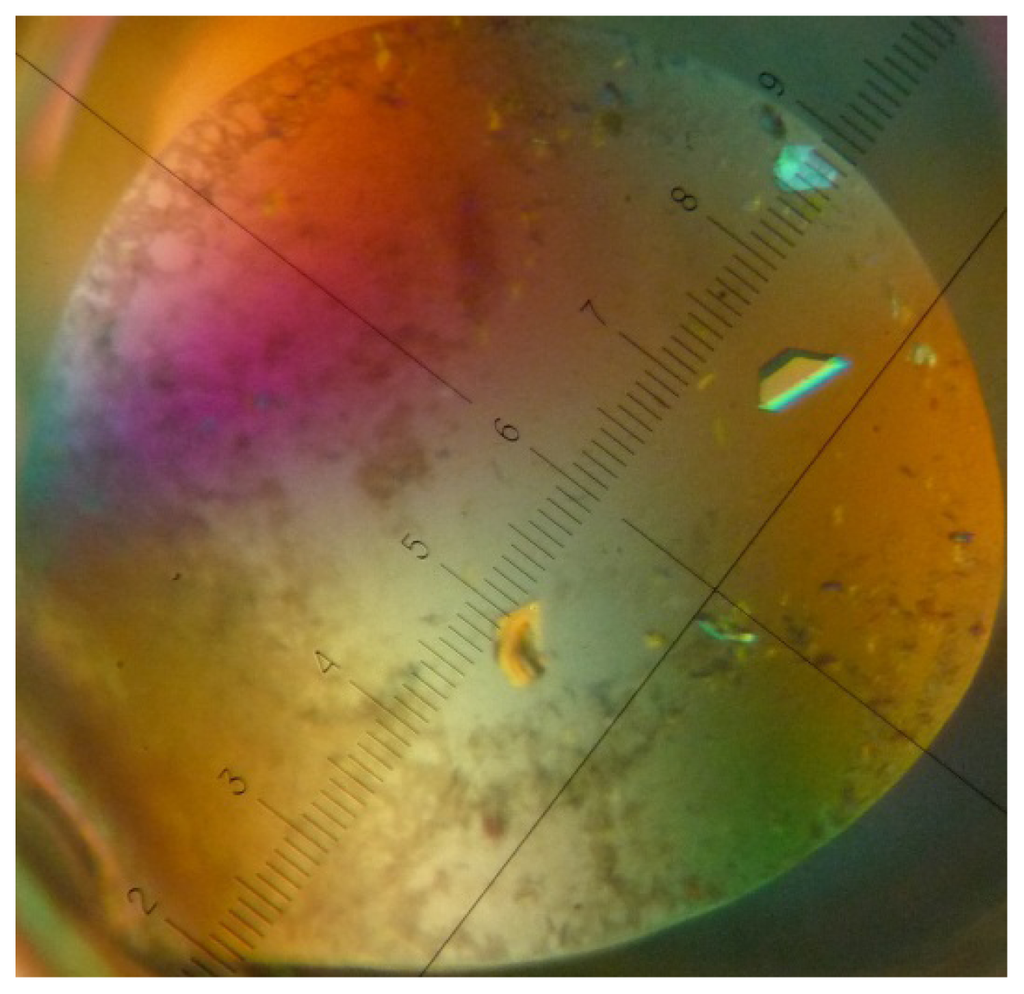 - Friedmann, D.; Messick, T.; Marmorstein, R. Crystallization of macromolecules. Curr. Protoc. Protein Sci 2011, 66, 17.4.1–17.4.26. [Google Scholar]