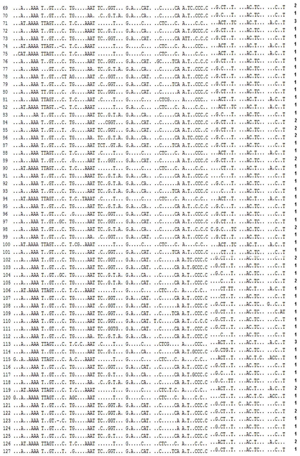2.1.1. Nucleotide and Haplotype Diversity