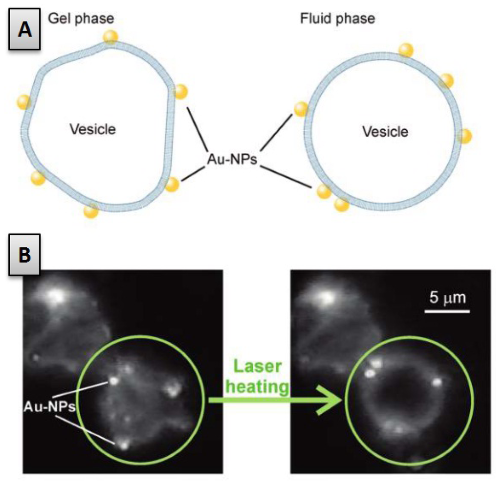 - Urban, A.S.; Fedoruk, M.; Horton, M.R.; Radler, J.; Stefani, F.D.; Feldmann, J. Controlled nanometric phase transitions of phospholipid membranes by plasmonic heating of single gold nanoparticles. Nano Lett 2009, 9, 2903–2908. [Google Scholar]