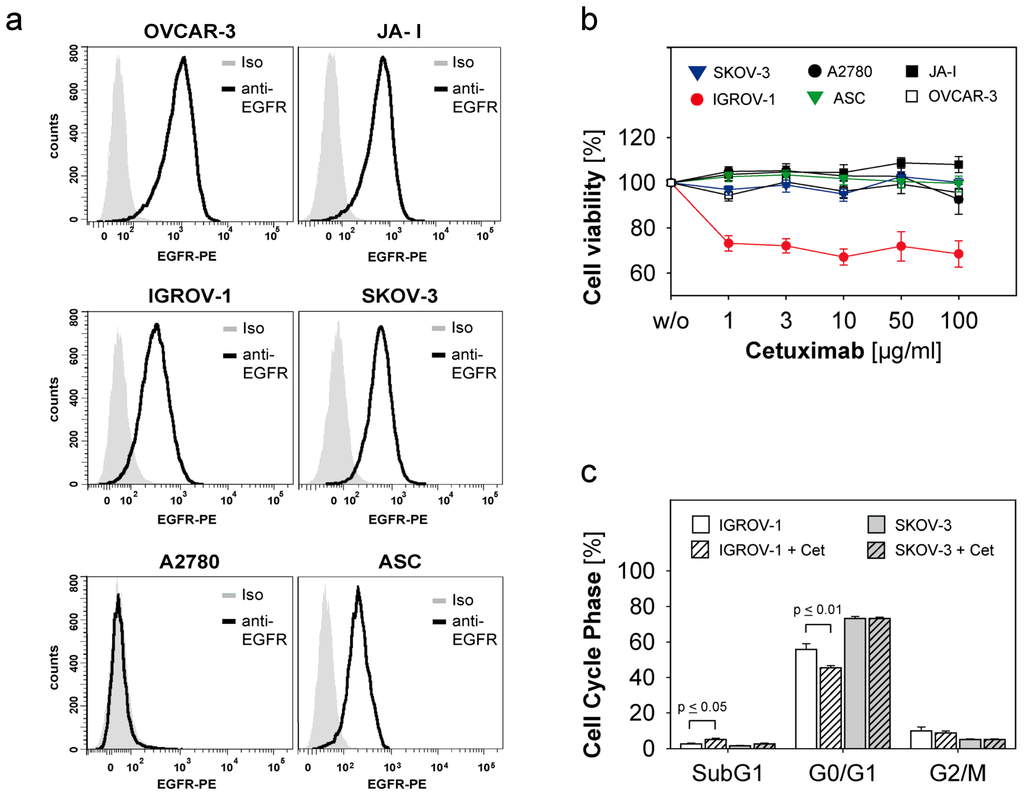 2.1. Susceptibility of Ovarian Cancer Cells to the Anti-EGFR-Antibody Cetuximab
