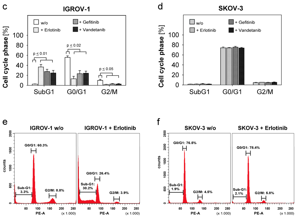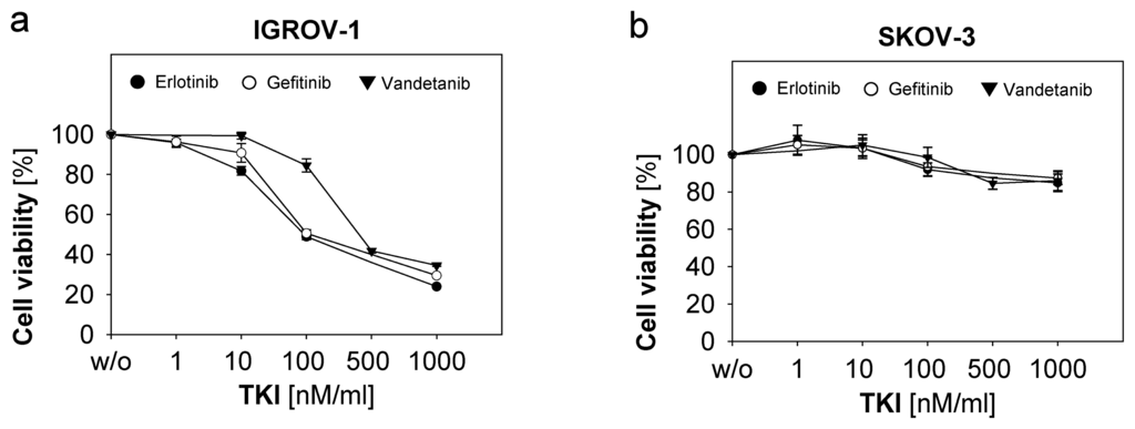 2.2. Response of Ovarian Cancer Cells to the Anti-EGFR-Tyrosine Kinase Inhibitors (TKI)