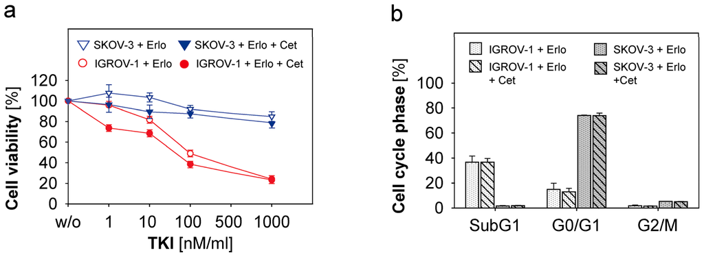 2.3. Combined Use of Anti-EGFR-Tyrosine Kinase Inhibitors (TKI) and Anti-EGFR-Antibody Cetuximab in Ovarian Cancer Cells